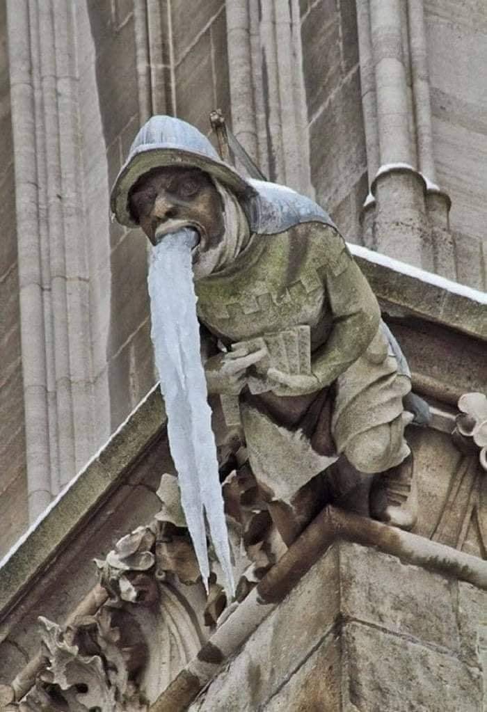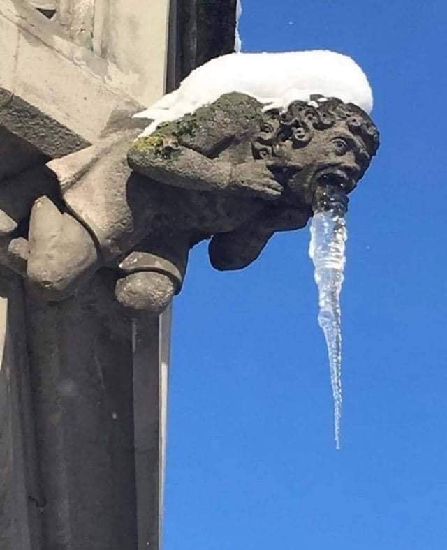 Pernah gak sih kalian melihat fenomena yang kocak banget, padahal momen tersebut gak sengaja terbentuk karena memang cuaca atau iklim yang sedang dingin dinginnya. Apalagi fenomena tersebut terbentuk dari sebuah benda mati dan cuaca yang sangat dingin. Nah mimin ada kumpulan potret bekuan es menyatu dengan patung patung di pinggir kota seperti sedang mual, Terlihat kocak dan bikin senyum tipis, penasaran? Yuk simak langsung saja..