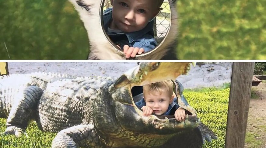 - Foto paling bawah seolah membuat anak jadi dimakan buaya