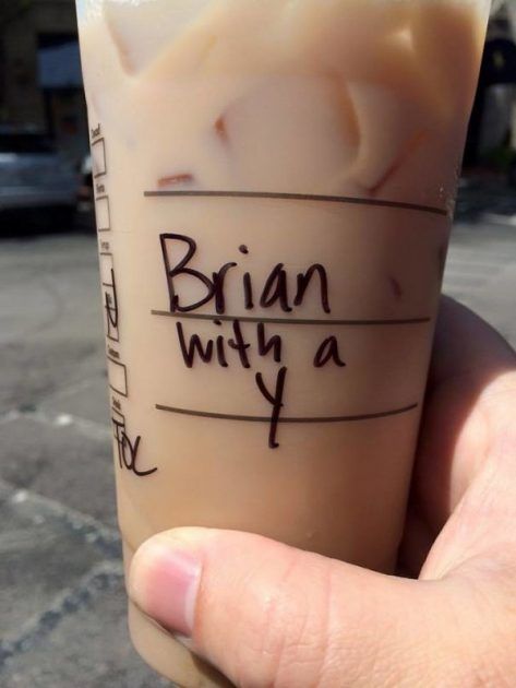 - Abang ini bilang namanya Brian pake Y, berarti Bryan. Eh si barista malah bener bener nulis Brian pake Y di gelasnya, ngakak!