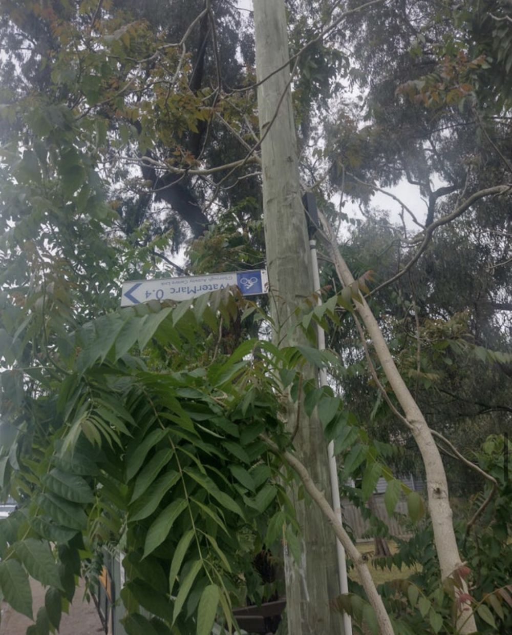 - Sudah tertutup daun, ketinggian, ukurannya kecil, terbalik pula. Dasar plang problematik!