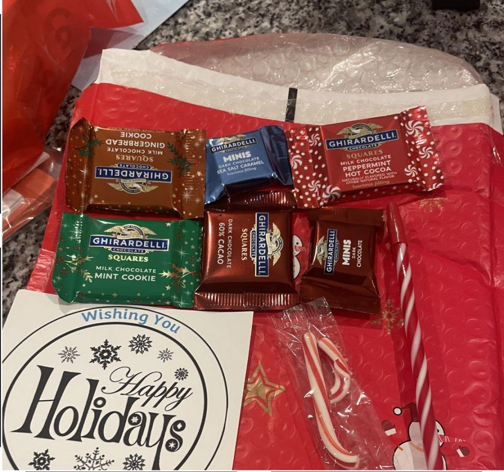 - Satu saset minuman kemasan sama permen Natal plus kartu ucapan, hadiah liburan yang sangat berkesan!