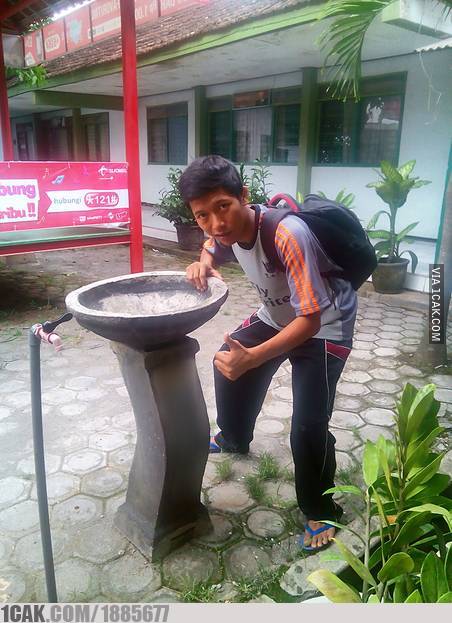 - Cuci piringnya kudu naik tangga dulu