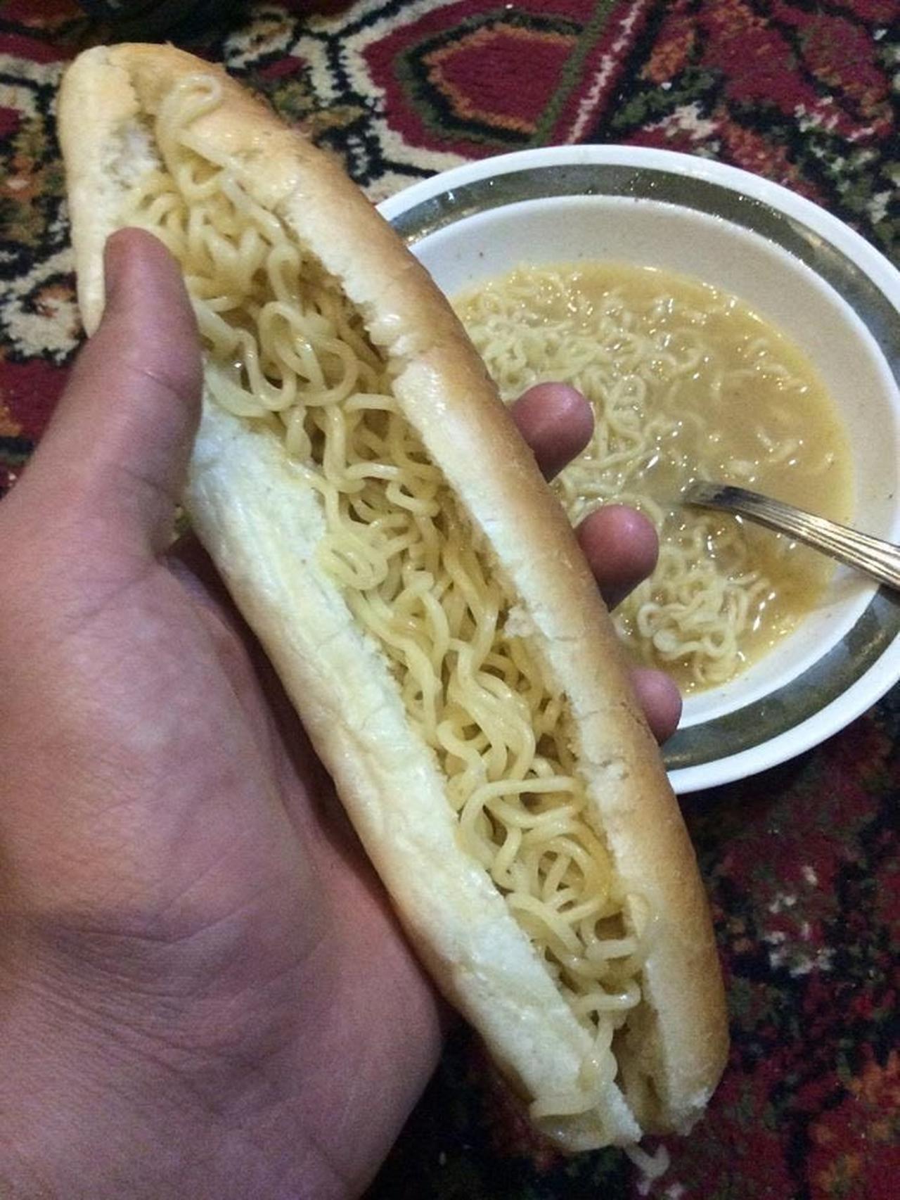 - Hotdog tapi lauknya mie