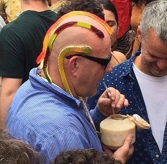 - Cuma dia doang pake permen buat dekoratif kepala botaknya