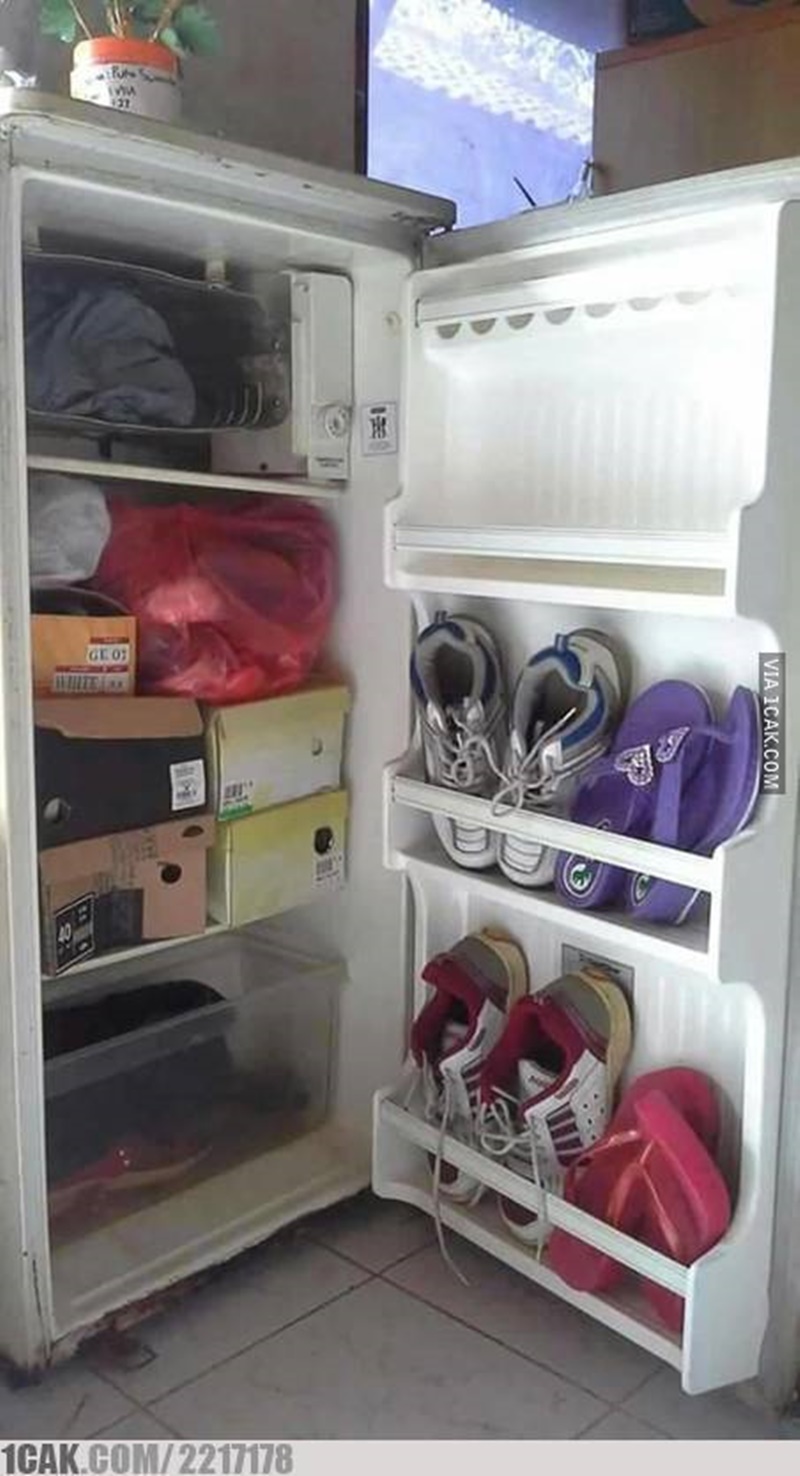 - Kebayangkan baunya seperti apa kalau sepatu dimasukin kulkas