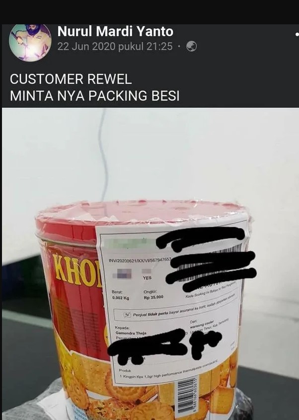 Belanja melalui online shop sudah menjadi kegiatan yang biasa dilakukan masyarkaat. Ada banyak jasa penyedia online shop yang bisa digunakan dan menjual beragam barang-barang kebutuhan. Walaupun pengalaman belanja online membuat kita tak bisa langsung melihat barang yang akan dibeli, para konsumen tak perlu khawatir. Kebanyakan online shop akan menyediakan packing atau kemasan yang aman agar sampai tempat tujuan. Namun rupanya tak semua kemasan sesuai ekspektasi. Beberapa netizen mengunggah momen dimana mereka mendapati kemasan barang atau packing dari online shop justru kocak banget, penasaran? Yuk cek aja langsung..