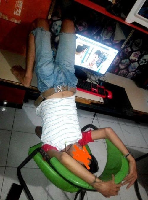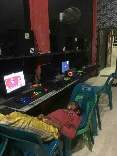 - Kok bisa sih tidur nyenyak dengan pose kaya gini? Di warnet lagi