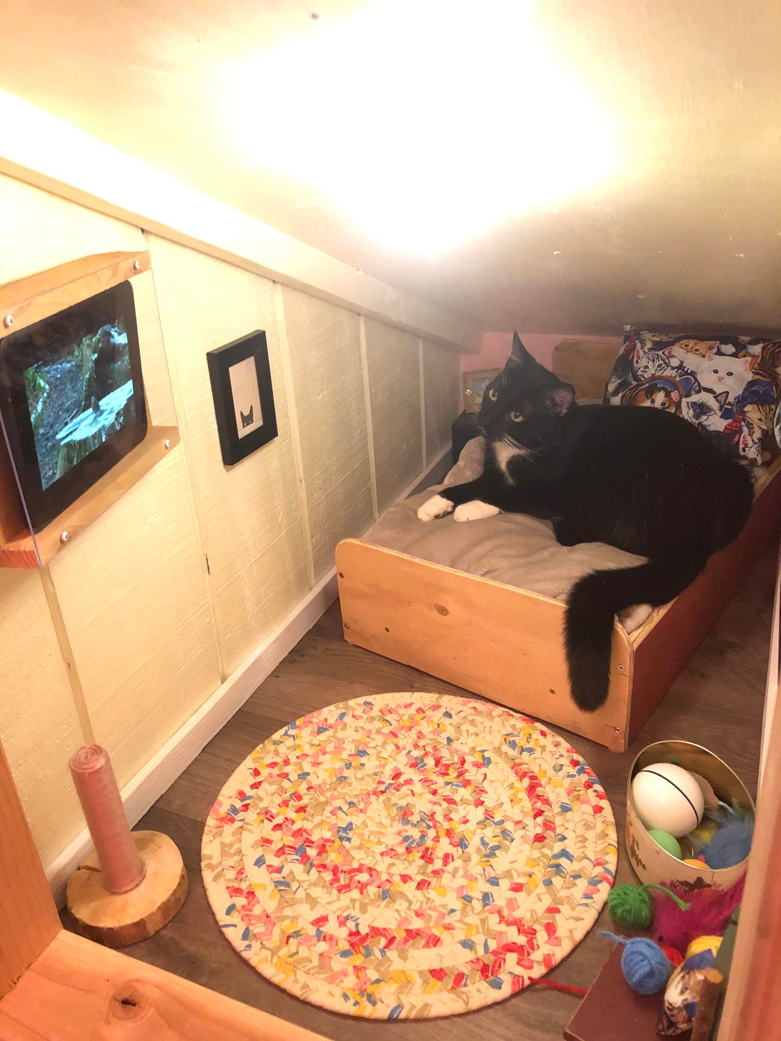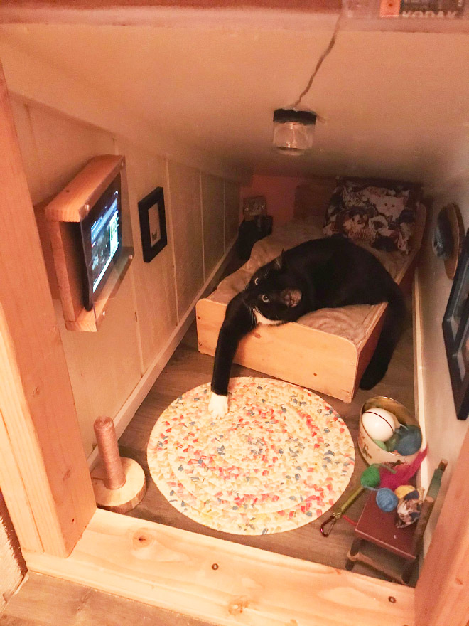 Salah satunya seperti kucing dibawah ini, yang dibuatkan sebuah kamar oleh pemiliknya. Pasalnya tingkah kucing layaknya manusia yang sedang bermasalan dikamar. Penasaran seperti apa? yuk lihat langsung saja..