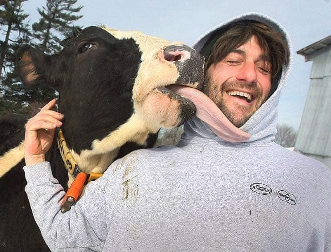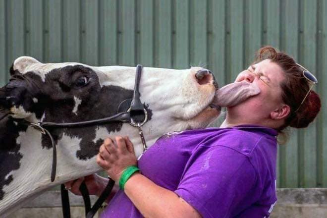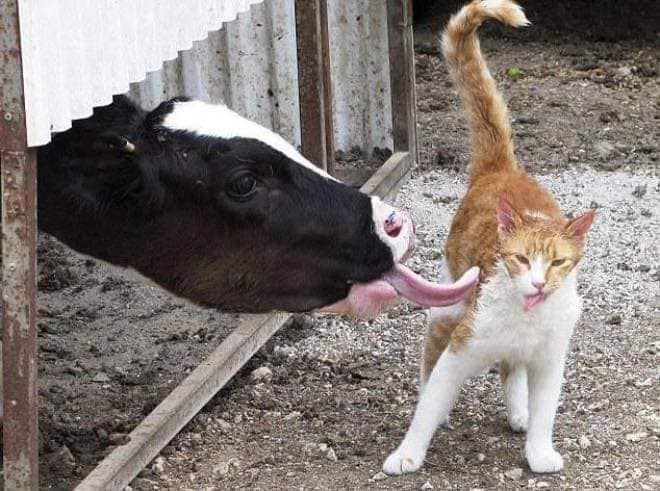 Ternyata sapi juga bisa jadi hewan yang humoris dan menarik perhatian! Ada potret kocak ketika sapi menjalin persahabatan dengan mahkluk lain dengn cara menjilatinya. Mungkin sapi-sapi ini ingin membuktikan bahwa tidak hanya manusia yang bisa bersahabat dengan makhluk lain, tapi hewan juga bisa lho! Penasaran seperti apa? Yuk cek langsung saja
