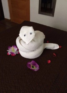 - Biasanya kalau pengunjung hotel dibuatkan angsa, ini buaya