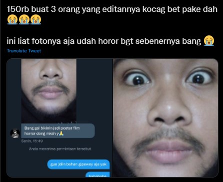 Jangan ragukan kreativitas netizen Tanah Air saat mengedit foto. Netizen selalu saja membuat editan foto yang bikin ngakak. Seperti editan dari netizen followers akun Twitter @patungalimar yang membuat editan foto selfie pria diubah menjadi poster film horor yang kocak. Saking kocaknya, editan foto yang viral di Twitter ini banjir like dan komentar dari netizen. Penasaran? Yuk simak!