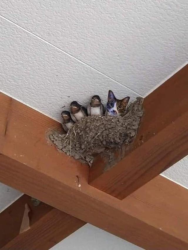 - Menginvasi kandang burung, kucing ini seakan berkamuflase