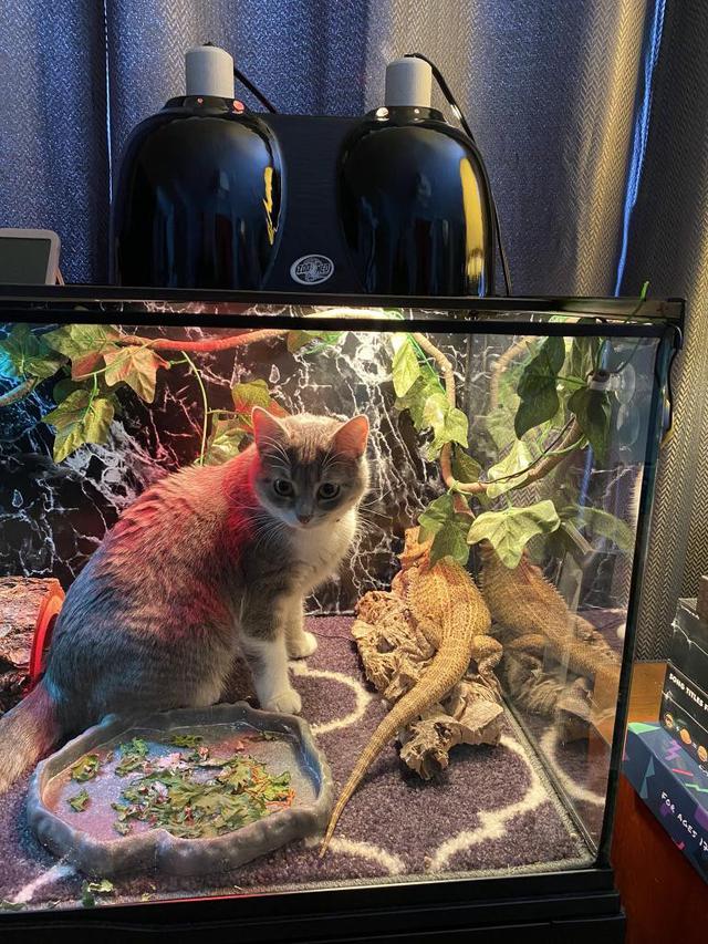 - Selain burung, kucing ini malah menginvasi kandang iguana