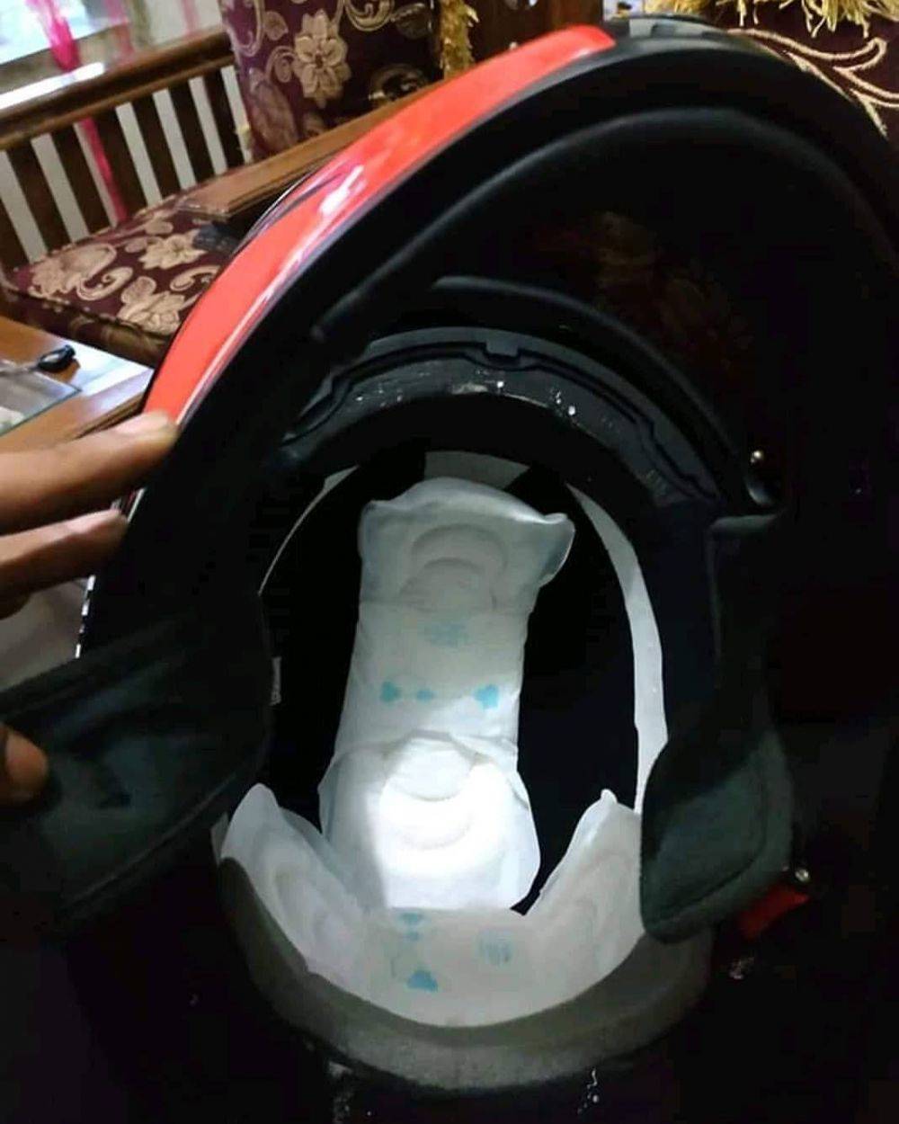 - Biar helm penumpangnya empuk atau kepalanya lagi bocor?