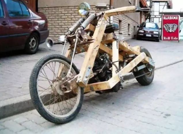 - Bannya diganti ban sepeda, rangka motornya diganti kayu.