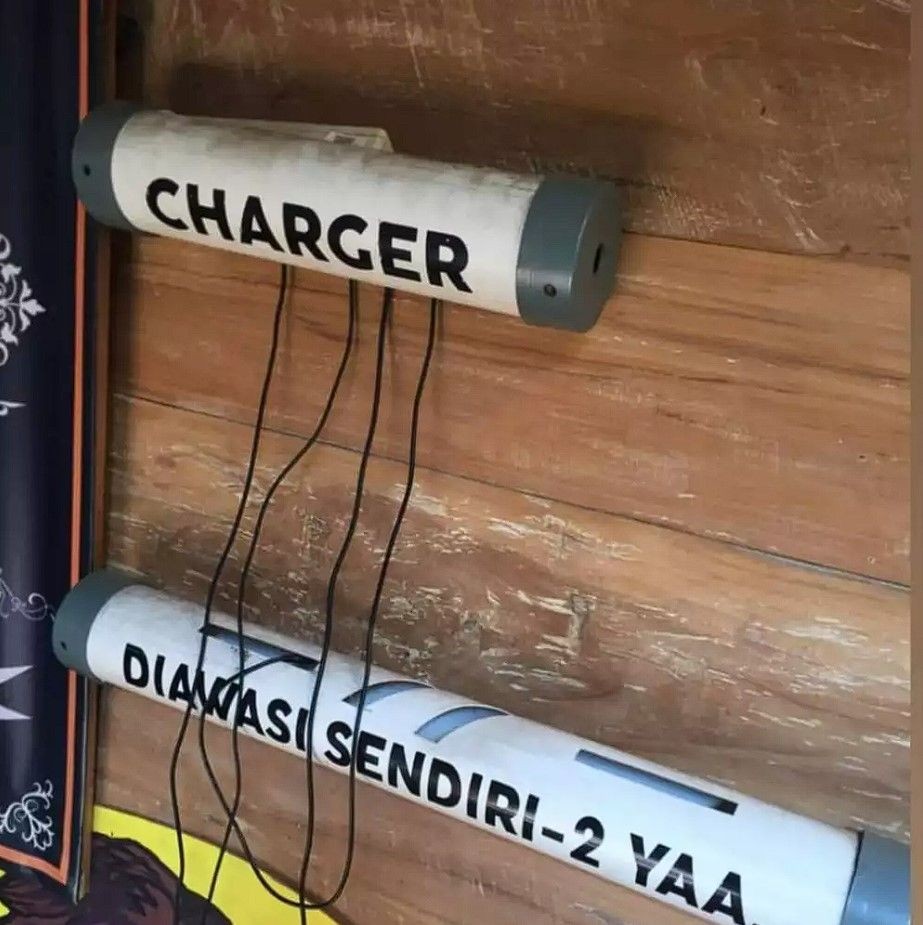 - Meski colokan ada jauh di langit-langit gedung, selagi masih bisa digapai pokoknya tancap aja