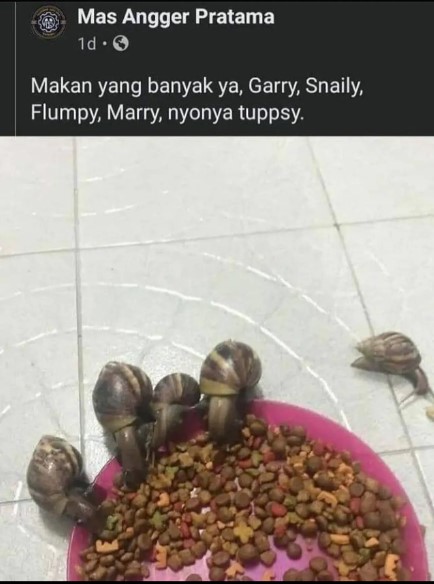 - Sekarang siput sudah jadi hewan ternak buat sate di angkringan
