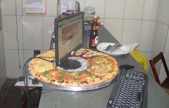 - Daripada penyangga laptopnya sia-sia, mending dipakai buat piza aja