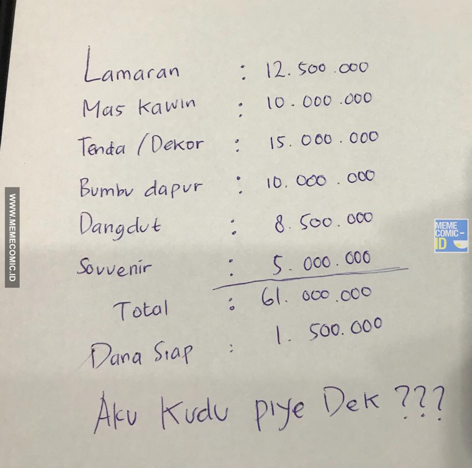 Mencatat kebutuhan dan perkiraan biaya yang dibutuhkan dalam pernikahan menjadi hal penting. Namun, terkadang tabungan yang tidak kunjung cukup menjadi permasalahan kebanyakan orang. Seperti yang dirasakan oleh pria-pria ini yang bakal bikin kamu ngakak...