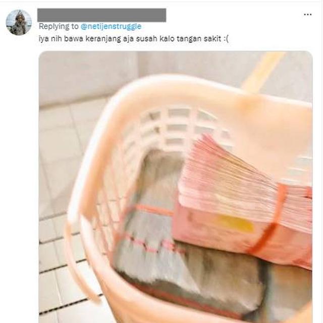 - Pasti banyak yang bantuin kalau kecapekan bawa keranjang isi uang