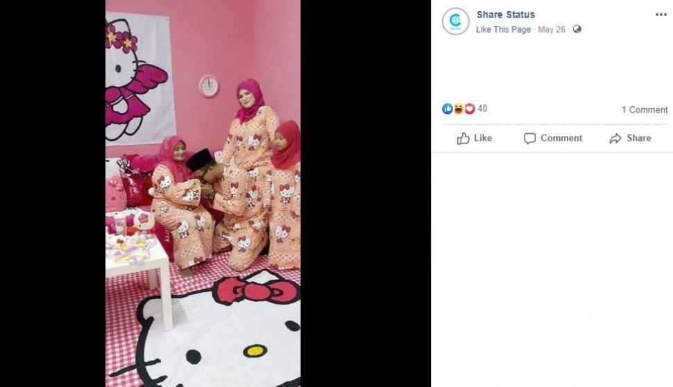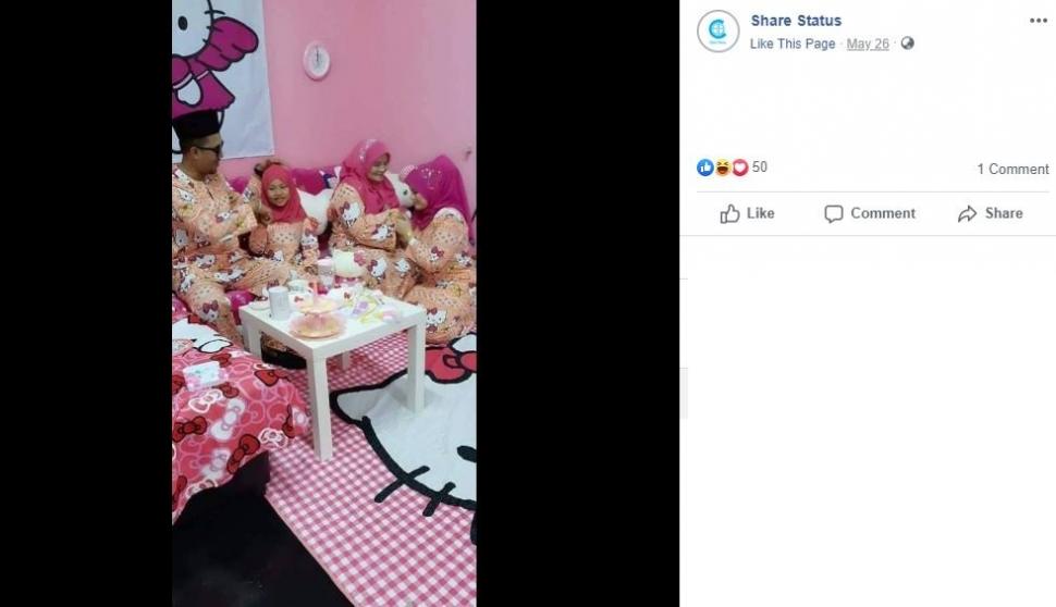 Beberapa tahun lalu satu keluarga ini viral di Facebook setelah menampilkan baju Hello Kitty yang digunakan di hari raya. Hal tersebut membuat segelintir akun fanspage Facebook membagikan sebuah unggahan unik mengenai sebuah keluarga yang kompak kenakan baju Hello Kitty. Unggahan tersebut lalu viral di Facebook setelah 2.700 Like dan ribuan komentar. Postingan juga sudah dibagikan lebih dari 1.200 kali. Penasaran dengan keluarga ini? langsung simak aja yuk foto berikut, kocak.