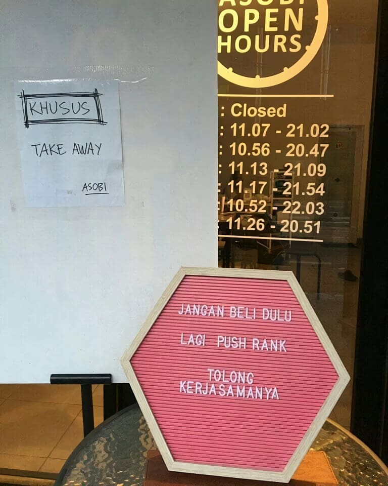 Deretan spanduk di toko ini berisi ala an kenapa pedagang lagi nggak jualan. Alasannya ada-ada aja dan bikin kita ngakak bacanya..