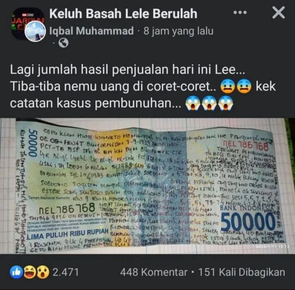 - Bener-bener nggak habis pikir, tulisannya bisa sampe menuhin uang kertasnya kayak begitu.