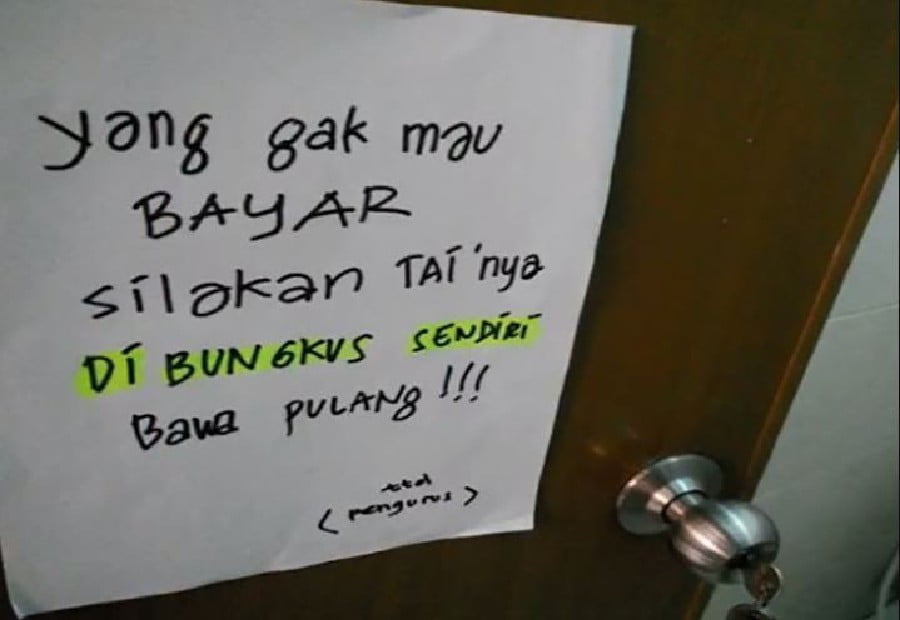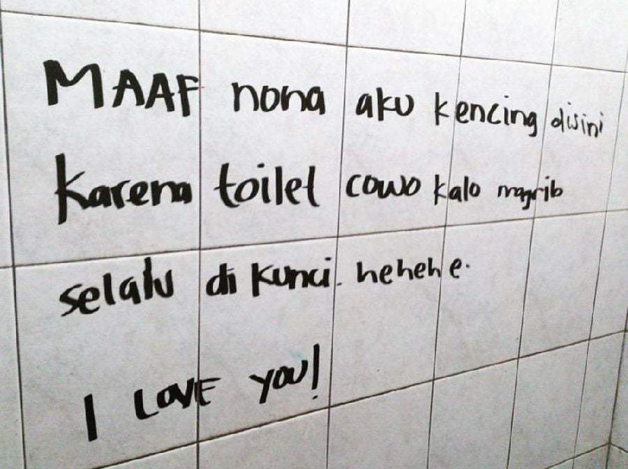 WC merupakan tempat dimana seseorang dapat membuang hajat atau membuang air dalam kesehariannya. Jika berada di WC umum biasanya kita menjumpai beberapa coretan atau tulisan di setiap temboknya. Tentu saja, mau tidak mau kita akan terdorong untuk membaca tulisan-tulisan tersebut. Terkadang tulisan tersebut berisi curhatan galau, peringatan, sampai tulisan yang bikin ketawa lho. Seperti deretan potret dibawah ini yang bakal bikin kamu cekikikan melihatnya, penasaran? . Yuk simak aja beberapa potretnya berikut ini