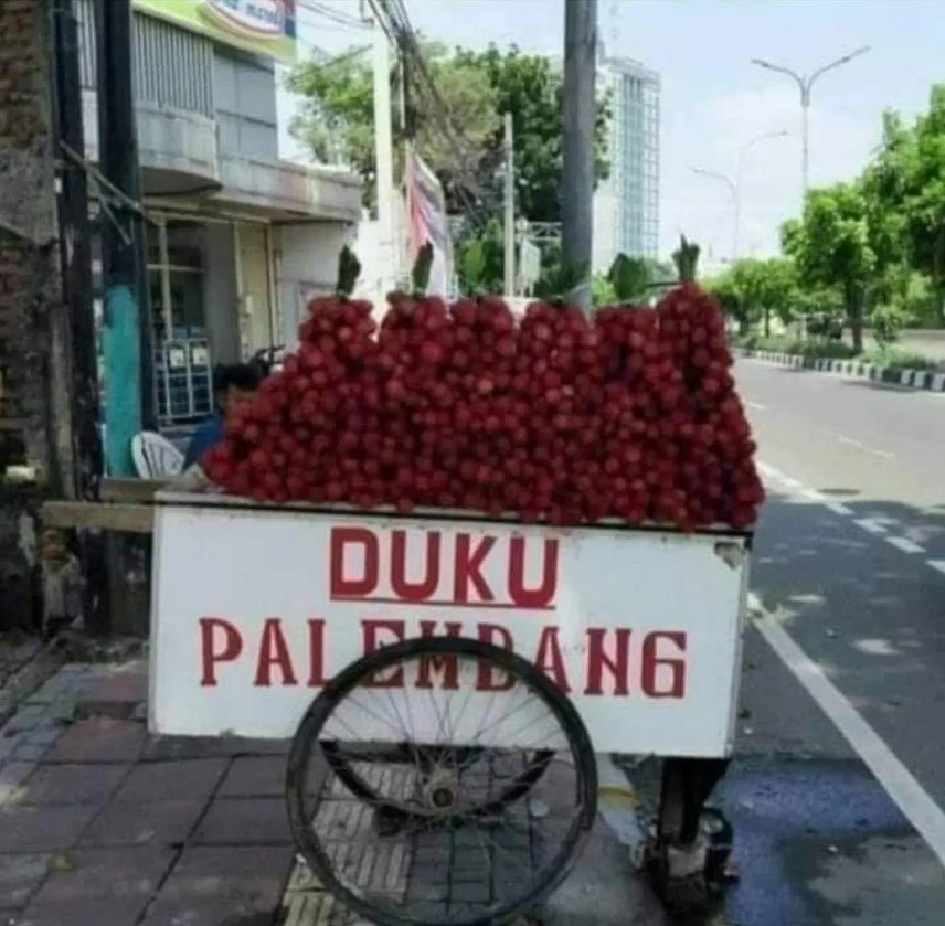 - Emang kalau di Palembang duku warnanya merah dan berbulu ya