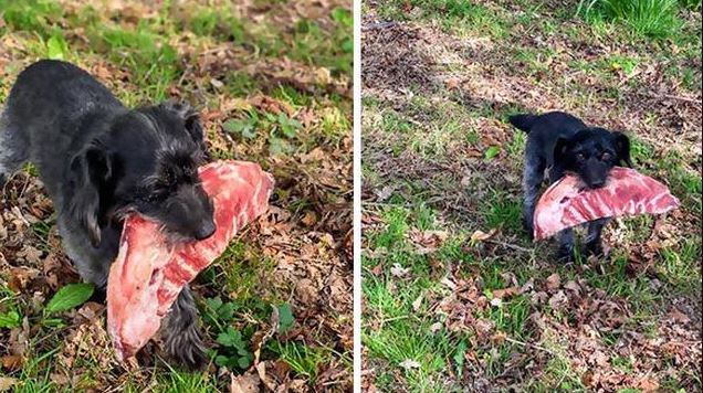 - Bingung iga yang baru dibeli di supermarket kok hilang. Ternyata digondol oleh anjing ini.