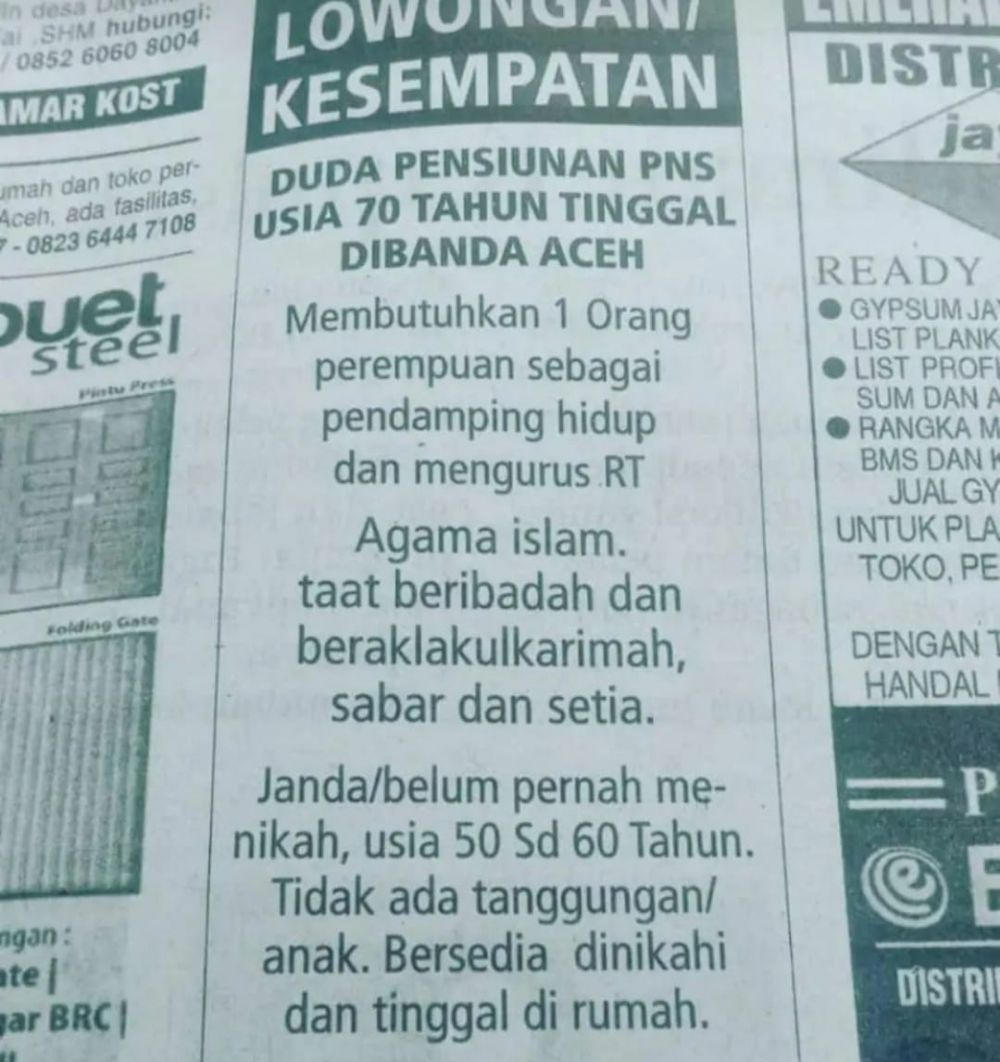 Di tengah perkembangan media online pada era modern saat ini, koran masih menjadi salah satu media cetak yang terus bertahan hingga saat ini. Nah, ngomong-ngomong soal koran nih, setiap individu maupun kelompok bisa menempatkan iklan atau pemberitahuan lewat kolom khusus koran. Ya, umumnya sih memang infonya penting semua. Akan tetapi, banyak juga ditemukan informasi dan iklan nyeleneh yang malah tersebar luas di koran. Seperti potret dibawah ini..