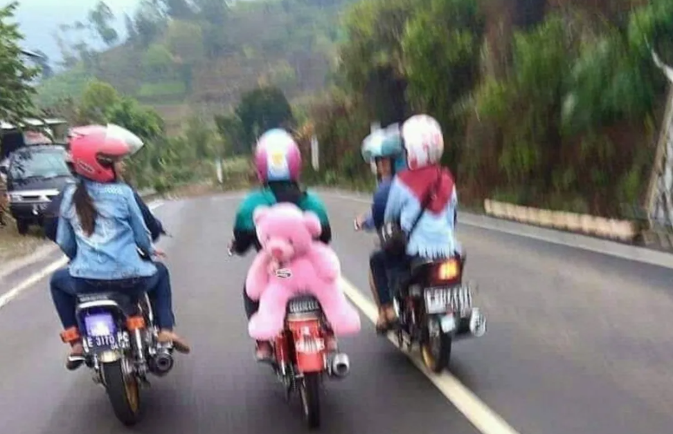 - Daripada jok belakang motor kosong, mending diisi boneka.