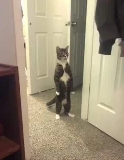 Mempunyai kucing di rumah dijamin penuh dengan tingkah aneh dan manja yang mengundang perhatian. Tidak jarang kucing-kucing ini bertindak sembarangan sehingga mengejutkan pemiliknya. Salah satunya adalah ketika kucing berdiri hanya dengan dua kaki, maka bentuk hewan berbulu tersebut langsung terlihat berbeda dari biasanya.