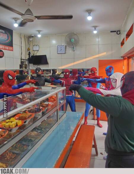 - Ketika Spider-Man dari berbagai universe sedang rebutan makan di warteg.