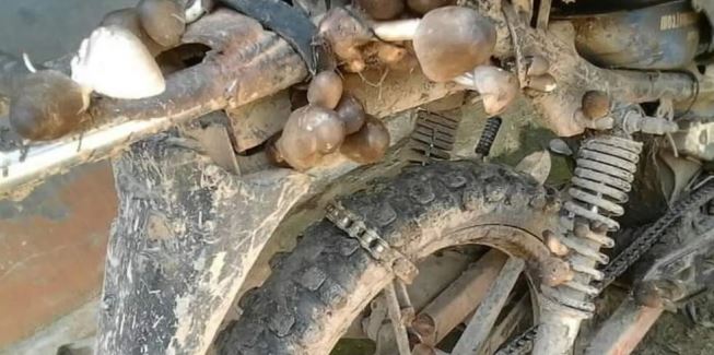 - Motor purba yang bagian joknya sudah dikuasai oleh para jamur.