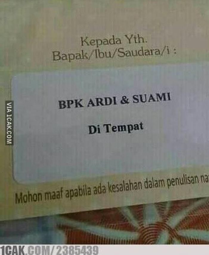 Meski begitu, ada yang kocak di tulisan nama penerima deretan undangan ini. Dijamin bikin kamu ngakak, deh. Penasaran? Yuk cek langsung saja..