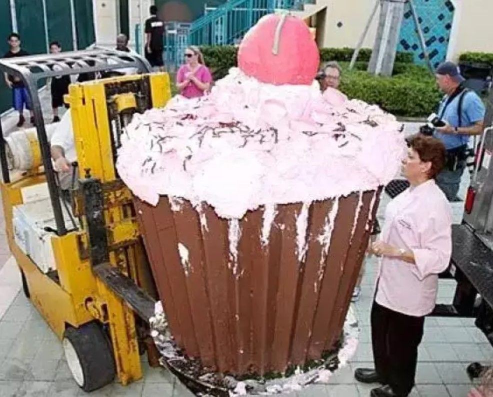 - Membawa cupcake raksasa ini saja harus pakai forklift, lho