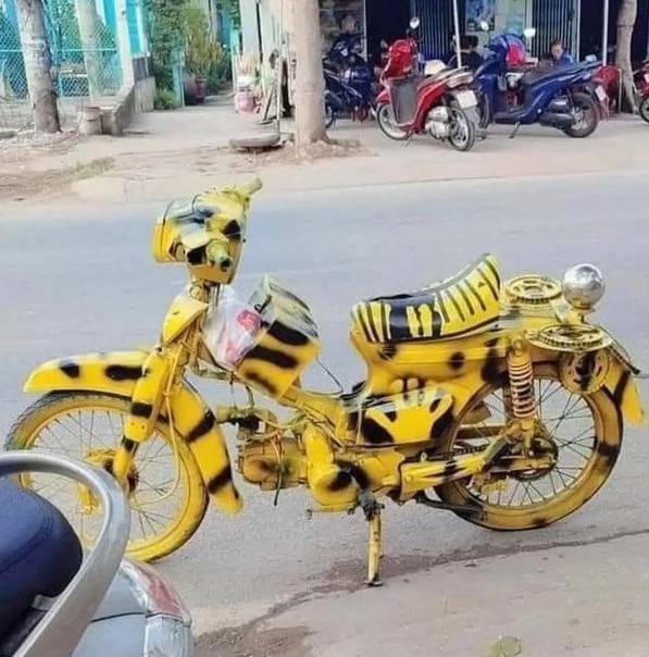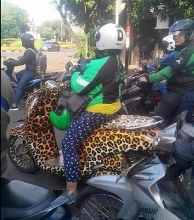 Motif macan sering dipakai untuk ide desain apapun. Mulai dari tas, baju, sepatu, sprei, selimut, bahkan sampai motor. Ya, modifikasi motor dengan motif macan ini memang terbilang aneh. Faktanya ada saja yang terinspirasi mengecat motornya seperti macan. Modifikasi motor tersebut tentu saja terbilang antimainstream, karena biasanya pemilik akan mengecat motornya dengan warna netral seperti hitam dan putih. Belum lagi motif macan memang dikenal sangat mencolok dibanding motif lain. Kira-kira kamu mau gak motornya dicat seperti deretan potret dibawah? hehehe