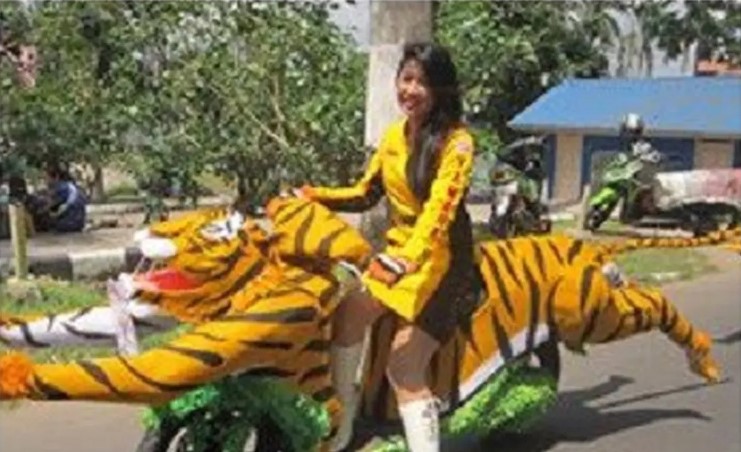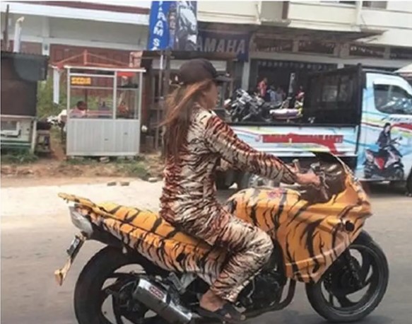 - Bukan cuma motif ada macannya beneran dong dimotornya