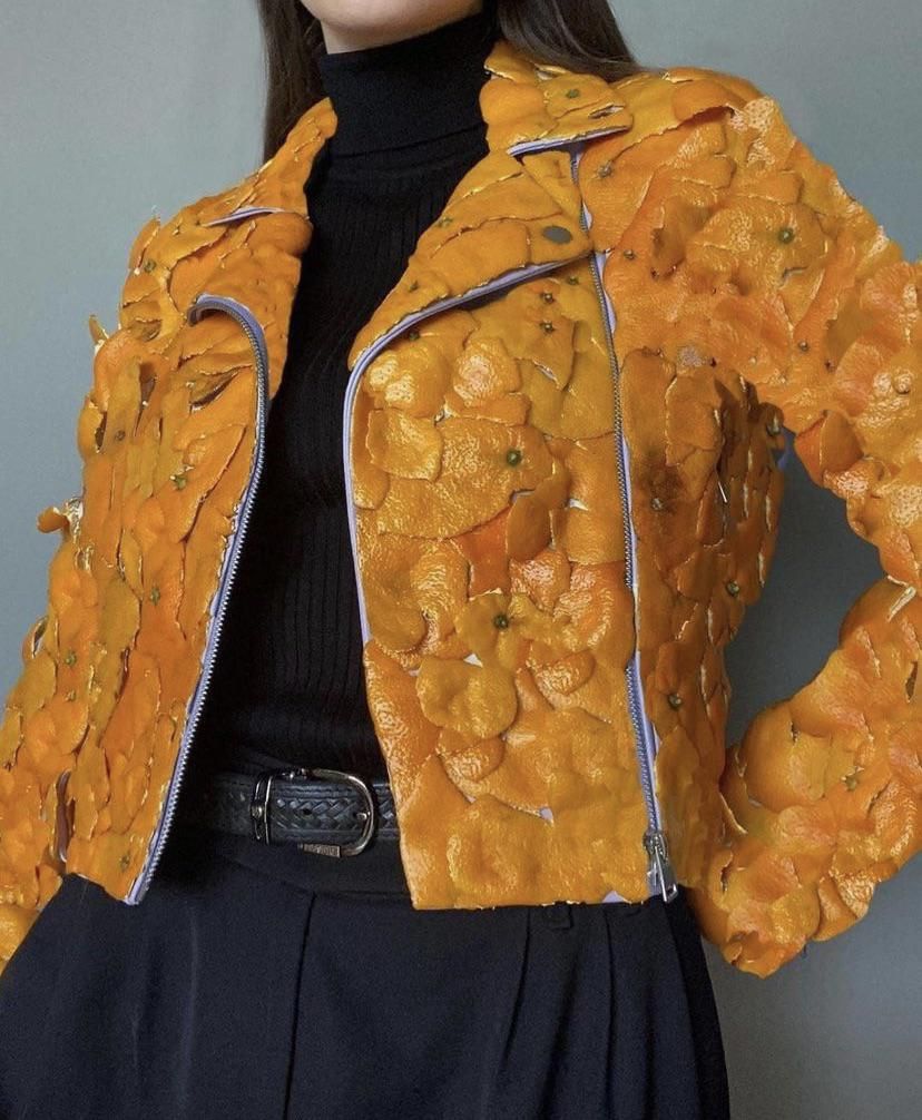 - Jaket dengan konsep kulit jeruk. Ini cocoknya dipake di dalam mobil gak, sih? Buat gantiin pengharum mobil