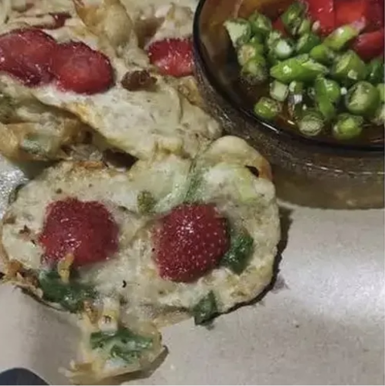 2. Bakwan pakai kol udah biasa, bakwan pakai stroberi siap-siap bikin dahi berkerut.