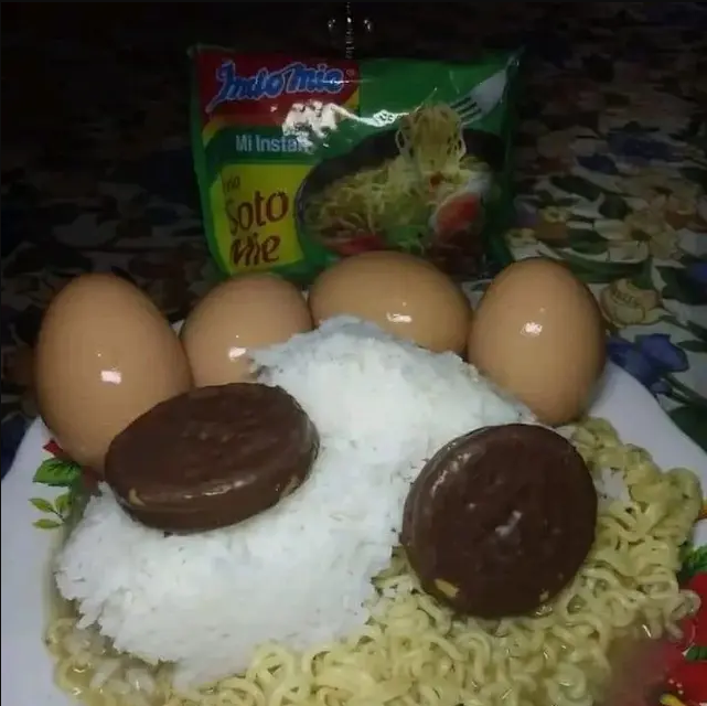 - Gara-gara kekurangan lauk, biskuit cokelat pun dijadikan pilihan sebagai lauk.