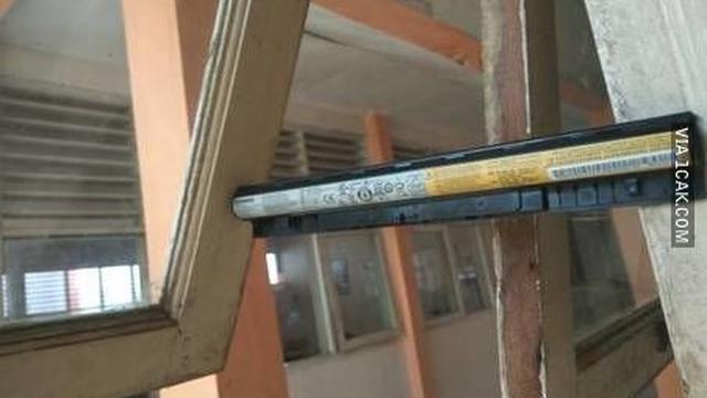 - Saking enggak adanya pengganjal jendela sampai pakai baterai laptop