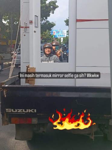 Jika melihat sebuah kaca di tempat umum, biasanya seseorang langsung ingin mengabadikan foto untuk mirror selfie-nya. Namun bagaimana hasil fotonya jika seseorang melakukan mirror selfie di kaca besar yang ditemukannya tanpa sengaja di jalanan? Seperti beberapa netizen sering menemukan momen saat orang selfie gratis di jalanan ini. Penasaran seperti apa jadinya? Yuk cek langsung saja