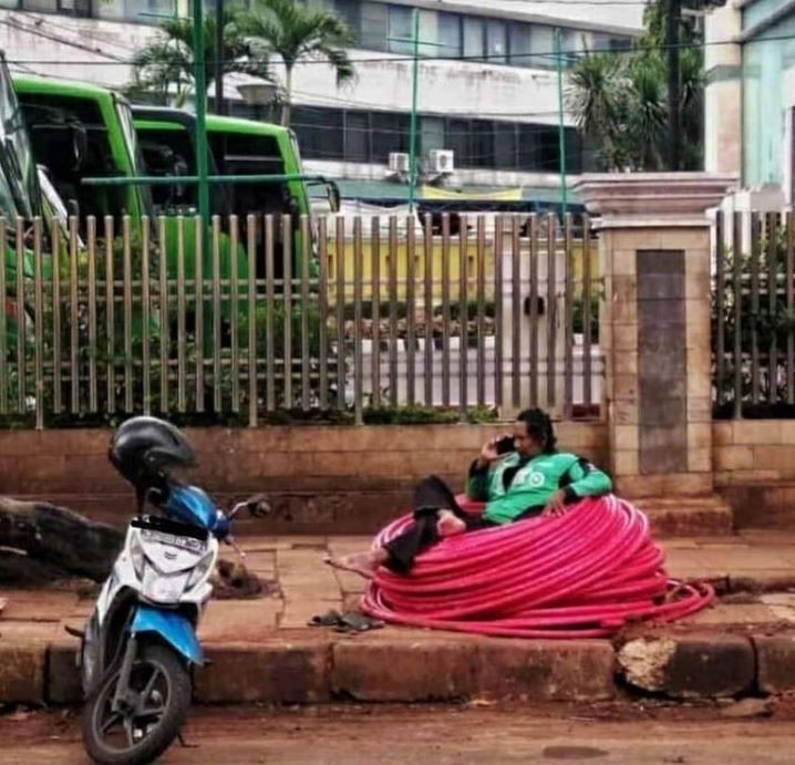 - Santai dulu ya biar ga pegel abis narik penumpang