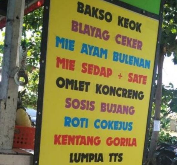 Beragam cara digunakan untuk pemasaran, produk makanan yang dijual harus memiliki ciri khas atau harga yang relatif terjangkau dari kompetitori. Selain itu ada satu cara yang cukup unik dan menarik yang bikin pelanggan penasaran buat nyoba melalui nama yang nyeleneh seperti deretan nama makanan di bawah ini. Dijamin bikin kamu ngakak melihatnya, penasaran? Yuk simak langsung saja..