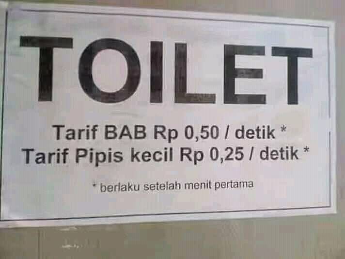 - Toilet umum zaman sekarang udah kayak taksi, ada argonya