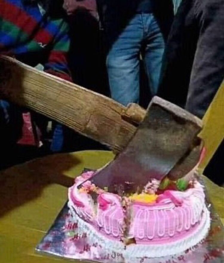 - Sekalian potong tuh mejannya