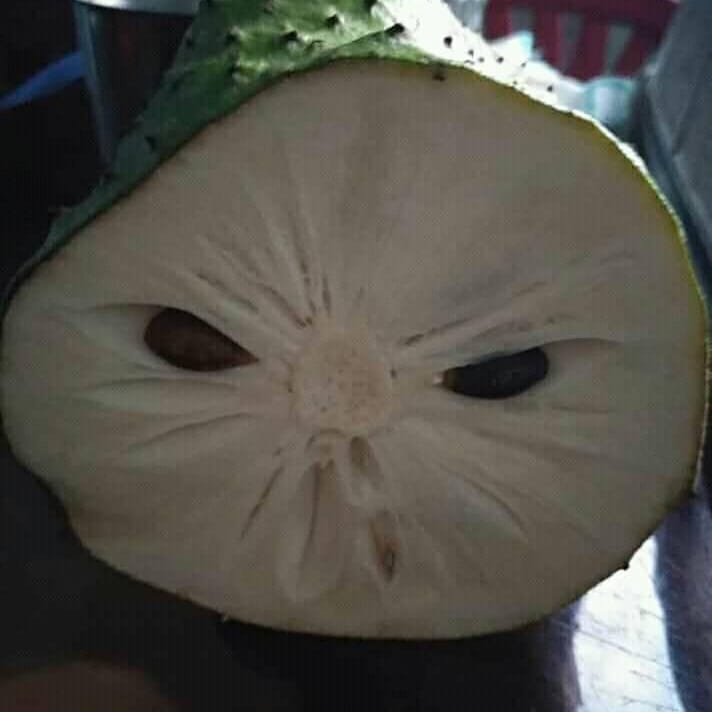 - Lagi belah sirsak eh malah dilihatin sama sirsaknya.