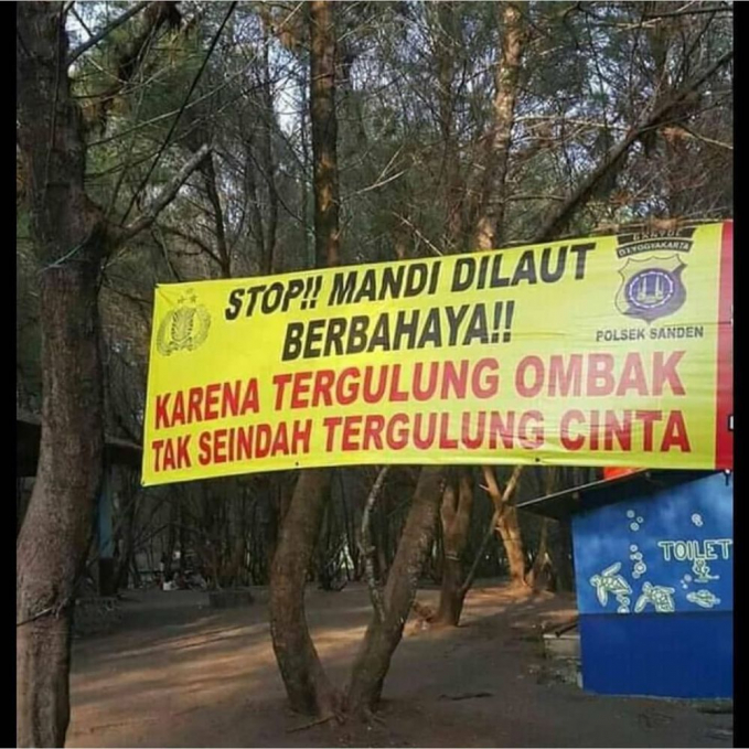 Tulisan pada spanduk juga dibuat beragam, ada yang isinya tegas dan serius, ada pula yang dibuat lucu dan menggelitik. Contohnya seperti beberapa spanduk himbauan di tempat umum berikut ini. Dijamin membuat para pembaca tersenyum..